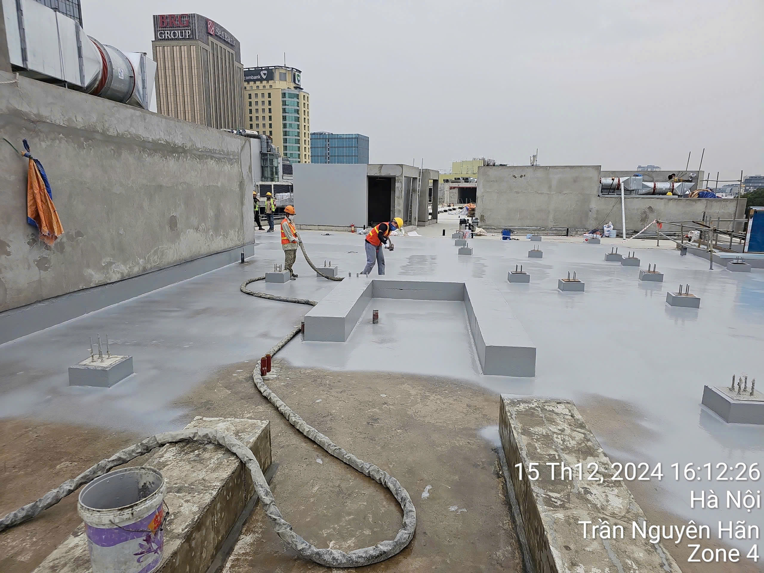 Ảnh: CBNV Petrocons Đông Đô thi công chống thấm tại dự án